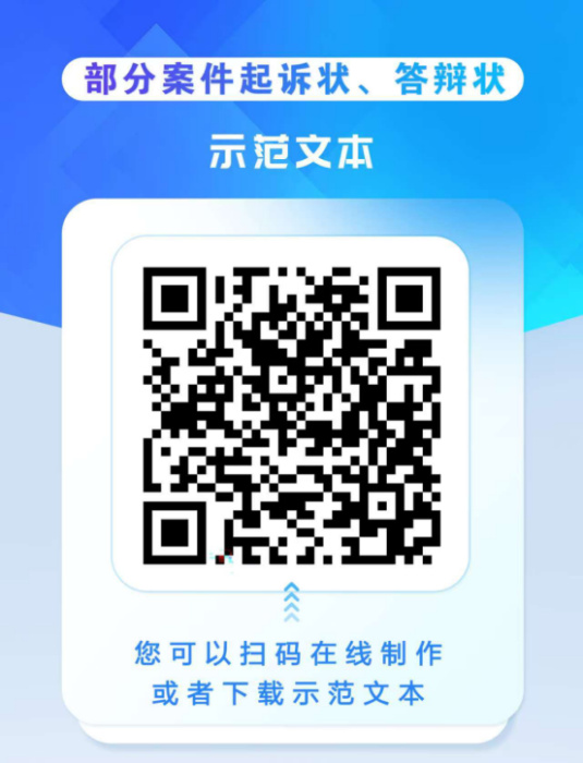 扫描上方二维码,确认完身份信息后,即可看到67类起诉状、答辩状示范文本,自行下载使用即可。也可选择“在线制作”,勾选符合自身情况的选项,即可生成所需文本。