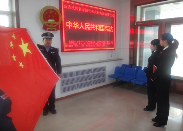 新青法院积极贯彻落实宪法宣誓制度,新春佳节刚过,对2015年新录用的公务员举行了宪法宣誓仪式。