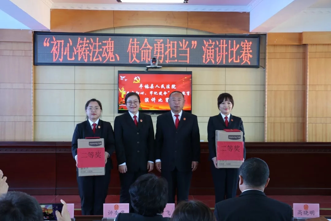 经过两个多小时紧张有序的角逐,评委们公平公正现场打分,比赛共评出一等奖1名,二等奖2名,三等奖3名,纪念奖8名。红星法庭赵春颖以《不忘初心跟党走》为题的演讲,从14名参赛选手中脱颖而出,荣获一等奖。
