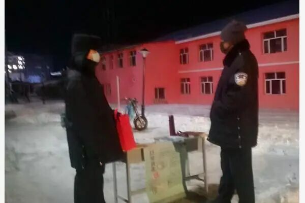 又是一个深夜,天地一片黑暗。但是有一点亮光,始终萦绕在小区门前。这是人睡意最浓的时候,也是熬夜人最疲倦的时候。实在顶不住了,他们又拿出了一根香烟,借着烟草辛辣的刺激,又能熬过半个小时。在五营,值夜班的人是宫大彬、王利丰;在新青,他们是张祥君、齐敬海。一个又一个寒冬的深夜,他们是怎么熬过来的,我们无法体会,只能祝他们保重。